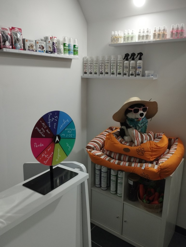Un petit coin boutique vous attend dans notre centre. Vous y trouverez une sélection d’accessoires tels que harnais, colliers, laisses, bandanas, ainsi que des barrettes et élastiques décoratifs à ajouter lors du toilettage. Nous proposons également des produits cosmétiques pour l’entretien du pelage, des oreilles et des yeux. Notre offre évolue au fil des saisons, vous permettant de découvrir de nouvelles options tout en retrouvant vos produits préférés.