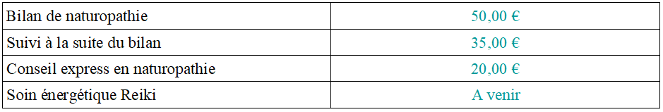 Tarifs Naturopathie